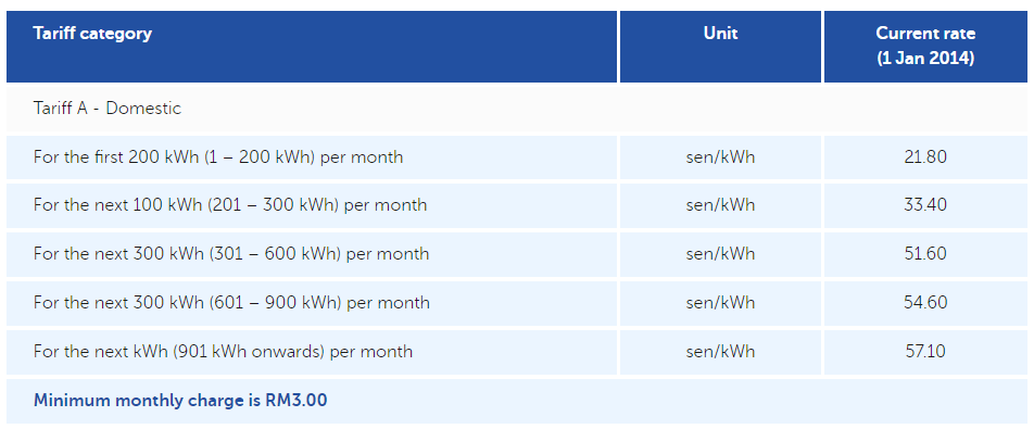 전력 사용량 X 0.33400 RM/kWh = 33.40 RM