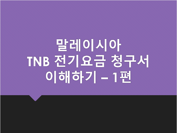 본 포스팅에서는 말레이시아 TNB 전기요금 청구서에 대해서 알아보도록 하겠습니다.