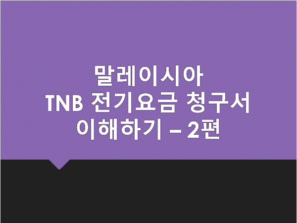 본 포스팅에서는 계속해서 말레이시아 TNB 전기요금 청구서에 대해서 알아보도록 하겠습니다.