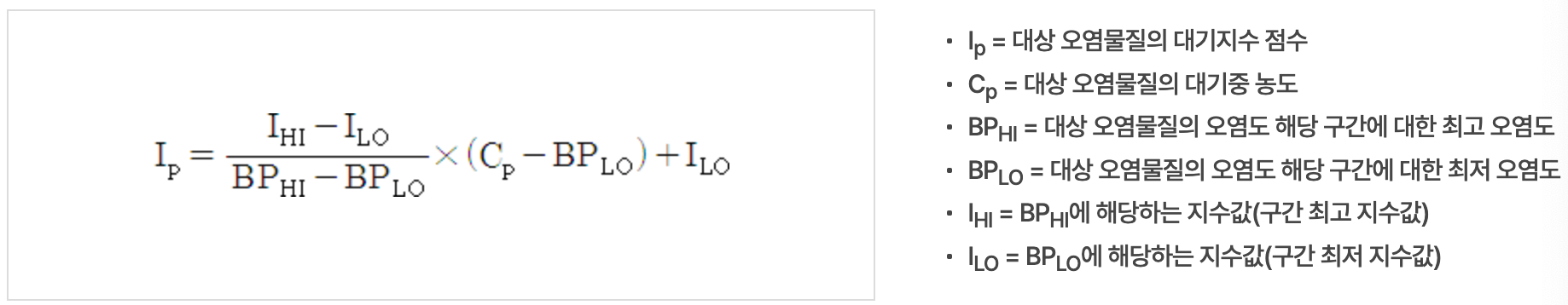 통합대기환경지수(CAI, Comprehensive Air-quality Index)는 대기오염도 측정치를 국민이 쉽게 알 수 있도록 하고 대기오염으로부터 피해를 예방하기 위한 행동지침을 국민에게 제시하기 위하여 대기오염 및 체감오염도를 고려하여 에어코리아(한국환경공단)에서 개발한 대기오염 표현방식입니다.